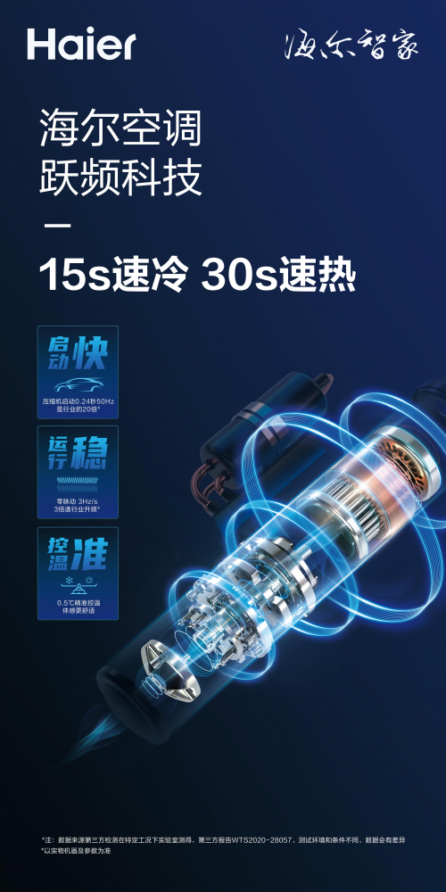 此外,同獲金獎的海爾空調變頻技術包含4項原創科技,分別是KTS高頻啟動、低頻自適應轉矩補償、PKC脈動抑制、高速穩流。其中,KTS毫秒級高頻極速啟動,讓空調可以開機15秒速冷,30秒速熱;低頻自適應轉矩補償,讓空調可以超低頻6Hz運行,一天僅需兩度電;PKC脈動抑制,中高頻壓機電流零脈動,實現70℃極限高溫下穩定運行不停機;高速穩流,160Hz為行業最高運行頻率,讓空調在-15℃的超低溫環境下制熱效率提升10%。