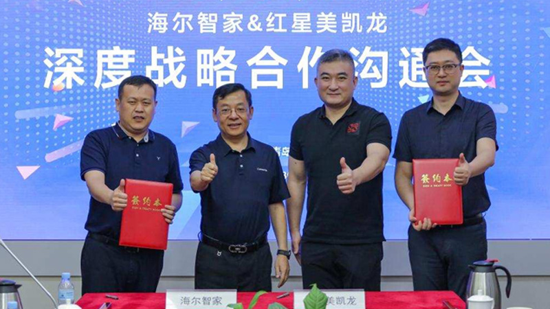 - 7月30日,“海爾智家&紅星美凱龍深度戰略合作溝通會”在青島召開。會上,紅星美凱龍與三翼鳥、卡薩帝正式簽約,并將在店面拓展、聯合營銷、展會招商等領域展開深度戰略合作事項,計劃攜手完成3年100%入駐300家智能電器生活館的計劃,共創百億市場。
