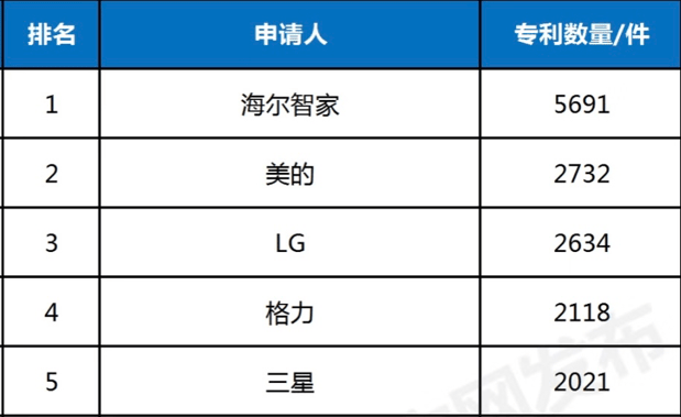 - 海爾智慧家庭專利:全球榜,居首位