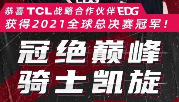 - 2021英雄聯盟全球總決賽圓滿結束,EDG拿到了世界冠軍。作為EDG的戰略合作伙伴,TCL 的成長歷程和EDG有著許多相似之處,TCL從1981年品牌誕生到如今業務遍及全球160多個國家和地區,每走一步都要在不斷創新中脫穎而出,最終成為全球第一的中國品牌。