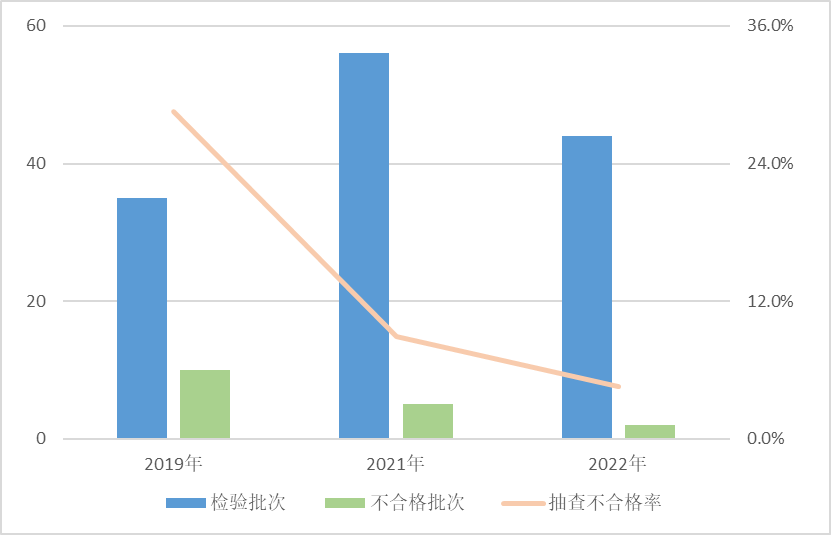本次重點抽查北京市、廣東省、湖北省企業生產的產品,分別抽查檢驗9批次、8批次和6批次,抽查不合格率分別為0%、25%、0%。