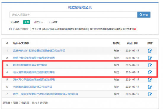 國家標準委發布7項擬立項強制性國家標準項目公開征求意見,包含除濕機、地面清潔器具等產品
