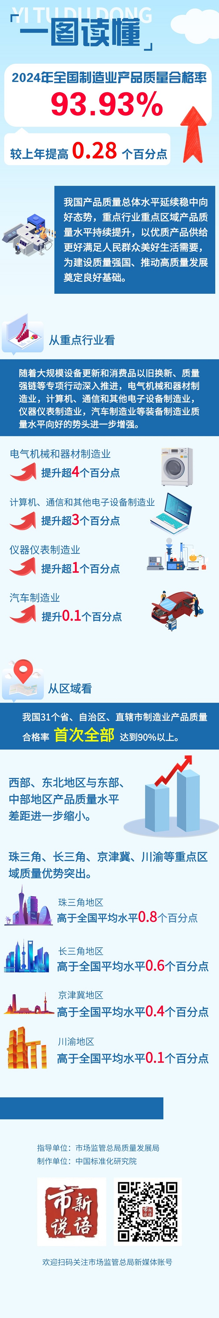 2024年全國制造業(yè)產(chǎn)品質(zhì)量合格率達(dá)到93.93%