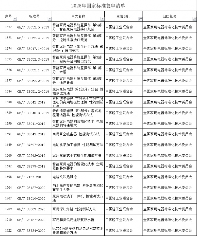 2025年推薦性國家標(biāo)準(zhǔn)復(fù)審工作啟動,涉及多項家電產(chǎn)品