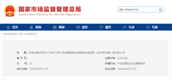 - 2023年2月17日,國家市場監(jiān)督管理總局發(fā)布關于征求71種產(chǎn)品質量國家監(jiān)督抽查實施細則(征求意見稿)意見的公告。 其中涉及房間空氣調節(jié)器、滾筒干衣機、廢棄食物處理器、加濕器、除濕機