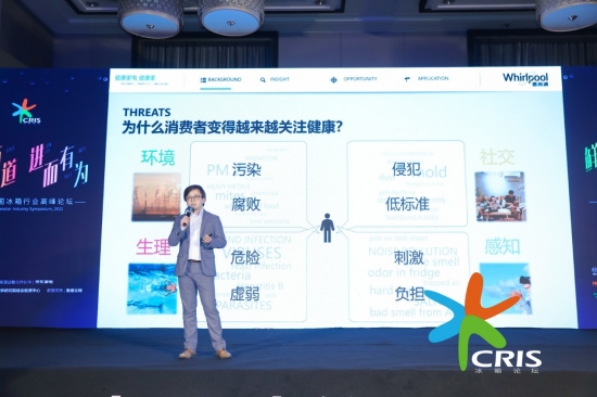 惠而浦(中國)冰洗產品市場部總經理單泠璇先生也以“健康家電·健康家”為題發表演講,從消費者對健康的關注出發,展示了惠而浦如何精準直擊消費者需求痛點,進行冰箱產品的研發創新,引領健康生活。