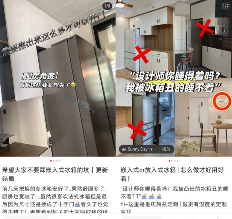 但是發(fā)現(xiàn)網(wǎng)上有太多嵌入式冰箱踩雷的案例了,很多冰箱說是完全嵌入,但兩側(cè)還是要留散熱的空間,最后浪費空間不說,長年累月下來衛(wèi)生也不好打掃,一摸就是一層灰,實在是有些不敢下手。
