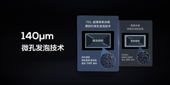 最后,TCL超薄零嵌冰箱采用了極具革命性的140um微孔發泡技術和全新的真空隔絕材料,使得冰箱保溫效果遠勝傳統冰箱的同時,R456T9-UQ機身厚度僅有580mm,比普通冰箱更輕薄,內部空間利用更具優。