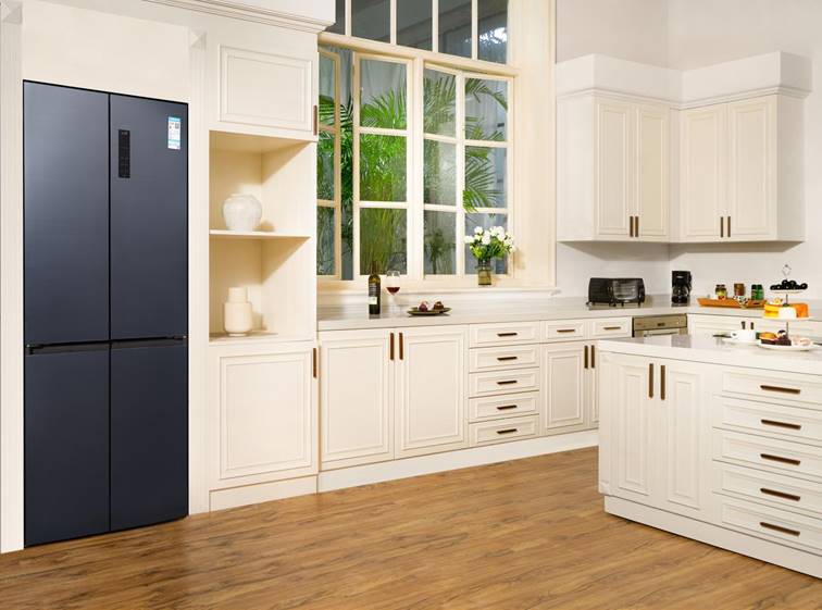 而且T9(型號R456T9-UQ)擁有580mm超薄機身,適配絕大部分櫥柜,不會出現“冰箱突出柜體”的尷尬場面。視覺上超薄零嵌冰箱T9與櫥柜融為一體,盡顯家裝簡約高級感。此次,TCL超薄零嵌冰箱T9特意設計了煙墨藍和韻律白兩種顏色,配色能搭配大多數櫥柜,在顏色上進一步提升冰箱與全廚房裝修的適配度,門體也可以根據自己的喜好選擇,不僅可以選擇十字門,還可以選擇對開門。
