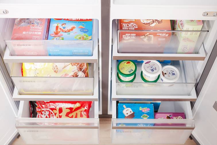 另一個讓我感受明顯的是格物冰箱Q10的空間,足夠大。555L本身已經容量很大了,再加上兩個超大寬幅變溫區,冰箱日常用起來更加靈活自由。