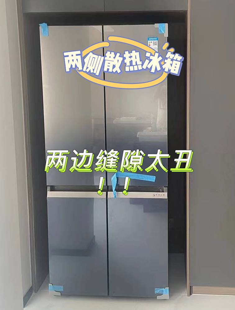 能放進(jìn)櫥柜就是嵌入式冰箱嗎?不一定!冰箱制冷的時候會產(chǎn)生很多熱量,為了保證它能夠正常工作,就需要及時處理這些熱量。大多數(shù)冰箱是通過兩側(cè)的冷凝器進(jìn)行被動散熱,這種冰箱兩側(cè)不能完全靠墻,要留出一定的間隙方便空氣對流,保證散熱效果。常見的嵌入式冰箱,根據(jù)采用的散熱方式不同,實際占用的空間也不一樣,兩側(cè)散熱的型號,兩側(cè)、背部、頂部,怎么也需要保留10厘米左右空間,這意味著你不能完全按照安裝空間的大小來選擇冰箱。而采用底部散熱的冰箱,理論上兩側(cè)和頂部只需要保留0.4厘米的挪動空間就行,既然要選嵌入式冰箱,那一定需要選底部散熱的。