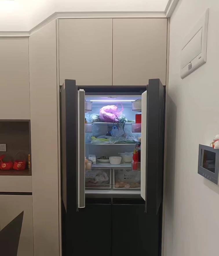 這幾個(gè)點(diǎn)大家在買冰箱的時(shí)候,一定要格外注意?;谝獫M足以上這些點(diǎn),我在買冰箱的時(shí)候挑了好久,才挑到TCL家這款超薄零嵌系列冰箱T9。T9采用底部散熱技術(shù),兩側(cè)可以只留0.4cm縫隙,從正面看幾乎0cm無縫嵌入,可以完美嵌入櫥柜,使得廚房空間整體性更強(qiáng)。得益于它的平穩(wěn)嵌入式鉸鏈設(shè)計(jì),T9冰箱可以做到即使緊貼墻壁,也能夠90°自由開合。