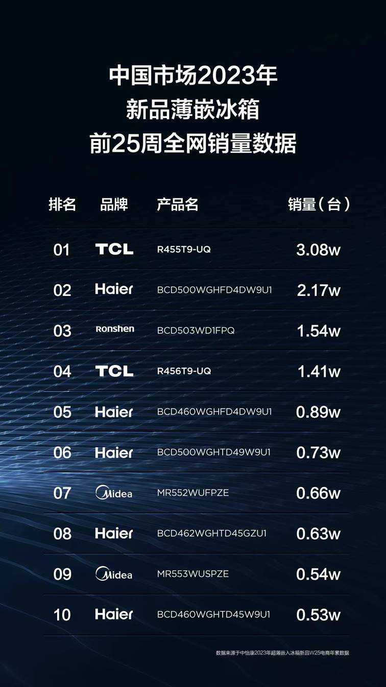 我看好這臺冰箱的另一個原因,就是對TCL品牌的信賴。他們家做冰洗已經二十多年,有非常強的實力,聽說現在洗衣機代工業務已經覆蓋全球,產品出口 88 個國家,在亞太、非洲、美洲、歐洲都有很高的知名度。 我還了解到,他們家T9冰箱在23年中國市場的新品薄嵌冰箱的前25周全網銷量數據中,以3.08W臺的好成績榮登第一。用戶會選擇出來真正好用的冰箱,正在裝修或者想要換新的小伙伴可以放心入手!