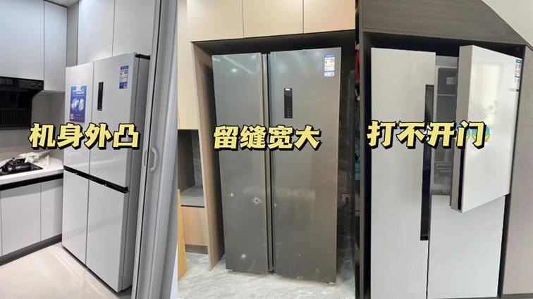 - 在計劃買嵌入式冰箱前,我特地上網搜了別人家嵌入式冰箱的使用情況。結果看到了許多安裝翻車案例:有嵌入不進去前側突出的,有放進入卻兩側縫隙寬大的,還有嵌入后打不開冰箱門的,花樣翻車。