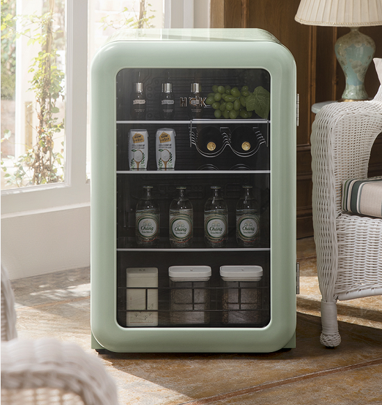 - 冰吧主要存放飲料,化妝品護膚,零食,牛奶,水果,奶粉,嬰兒輔食等等,是個適合存放比較干凈的食材容器,不會串味。也可放在客廳,臥室,宴會場所,辦公室等。從外觀來說,冰吧的外觀更時尚生活。