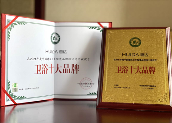 會議以“大商論道 光輝歲月”為主題,重點探討了新形勢下行業(yè)先進制造、高質量發(fā)展大計。期間,大會對2021年度優(yōu)秀陶衛(wèi)企業(yè)進行了表彰頒獎,惠達衛(wèi)浴憑借突出的行業(yè)影響力和強大的品牌綜合實力,在一眾品牌中脫穎而出,榮獲“衛(wèi)浴十大品牌”的重量級獎項。