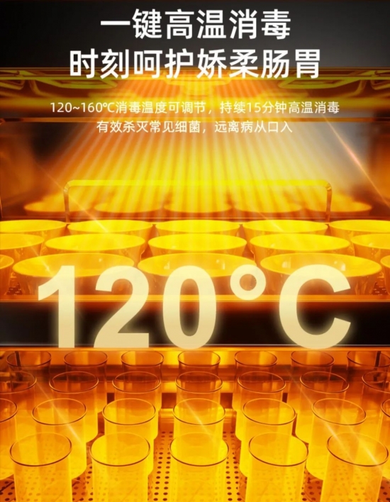 D3ZK-E還擁有消毒功能,一鍵開啟高效殺菌模式,120℃~160℃可調節高溫能夠進行15分鐘的高溫消毒,有效殺滅常見的有害病菌,給家人的健康帶來貼心守護。
