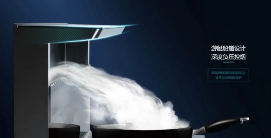 集成灶頂部是一個形為游艇船艏的超寬置物臺設計,900mm與機身等長。既能深度負壓控煙,更能夠用來放置各種調味品或準備烹飪的食材,實現廚房的高效收納,保持臺面整潔與美觀。