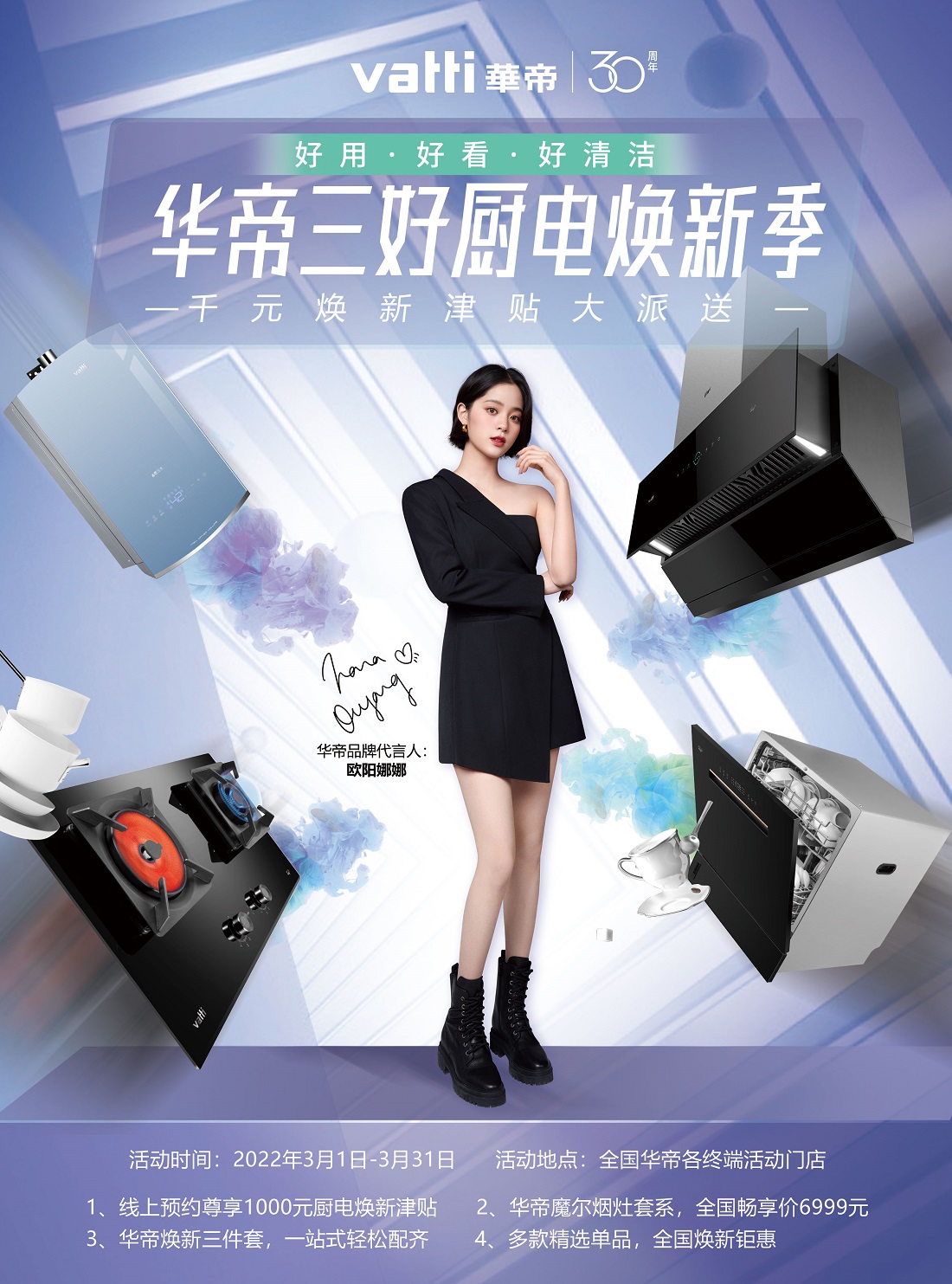 3月1日-31日期間,華帝全國開展#華帝三好廚電煥新季#活動,推出華帝魔爾套系熱賣產品,線上預約(預約鏈接https://m.sale.vatti.com.cn/activity/index)即可尊享至高1000元廚電煥新津貼,活動期間,華帝魔爾煙灶套系全國暢享價僅需6999元,華帝鴻蒙智聯新品燃氣熱水器JW6i僅2999元,華帝煥新三件套及多款精選單品等煥新鉅惠(詳情咨詢全國華帝各終端活動門店)。