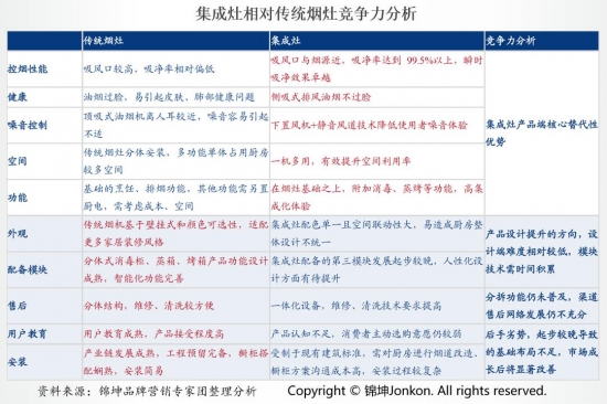 與傳統廚電相同,消費者更多的會考慮是集成灶還是整體廚房,更多的是品類與需求的競爭,而非品牌之間的競爭。