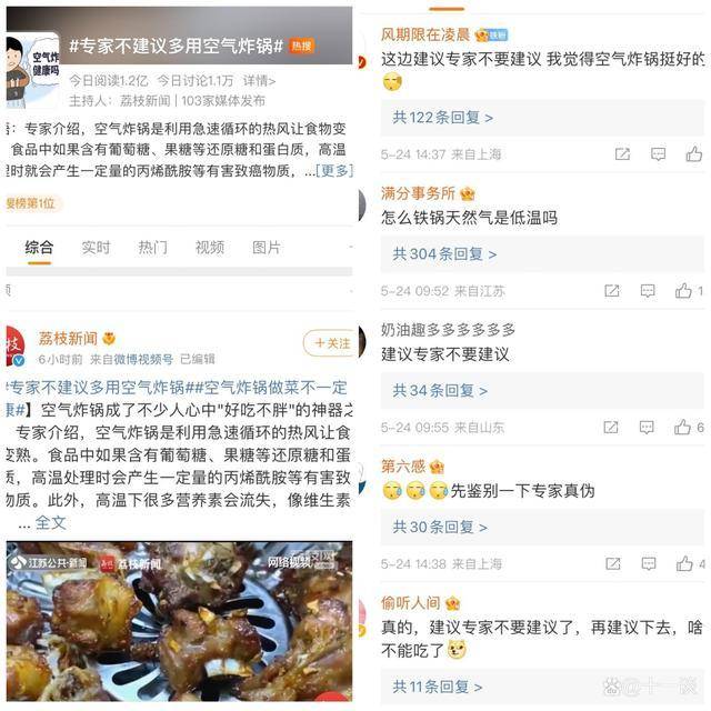 【劃重點】: 今天(5月24日) 專家建議又上熱搜了 一開始 專家建議:不要多用空氣炸鍋 登上了微博熱搜榜第一的位置 不過很快 前幾天登頂熱搜的 “建議專家不要建議”