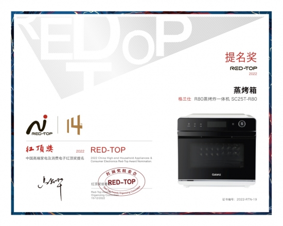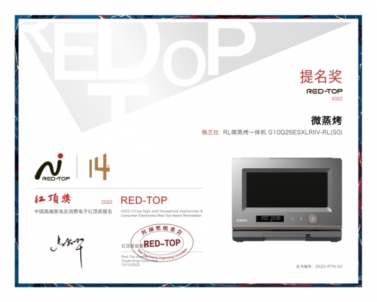 【家電資訊-家電資訊 - 廚衛,作者:編輯】12月15日,中國家電界的“奧斯卡”—— “第14屆中國高端家電趨勢發布暨紅頂獎頒獎盛典”在北京舉行,應用航天科技的硬實力和踐行綠色低碳理念,“宇宙廚房”健康家電明星團受到廣泛關注,一舉攬下多個獎項。其中,格蘭仕G0RT微蒸烤一體機以領先行業水平的多功能集成一體技術榮膺紅頂大獎,R80蒸烤炸一體機、RL微蒸烤一體機榮獲紅頂獎提名獎。