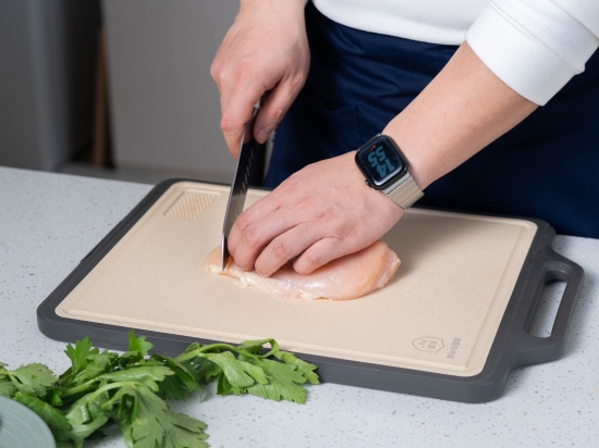 菜板反面為谷纖維面,自然環保更健康,用來剁肉、砍骨頭完全不在話下,能夠避免與菜板正面切配水果蔬菜產生交叉影響。另外,谷纖維面添加銀離子元素,可以達到抗菌效果,切生肉也更放心,守護一家人的健康。