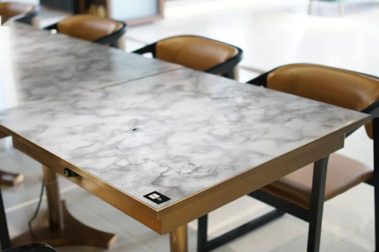 ▲媲美大理石外觀的微晶玻璃桌面,可以直接在桌上加熱進行烹飪 品牌:德國米技