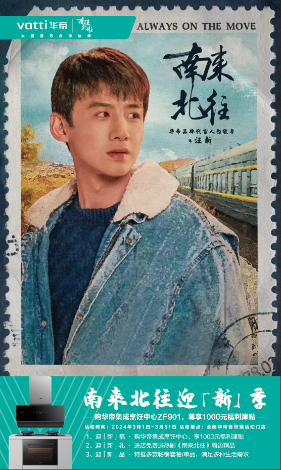 乘促消費政策之風,廚電行業領軍品牌華帝憑借其敏銳的市場洞察力,巧妙結合今年央視八套熱播劇《南來北往》的影響力和代言人白敬亭的流量熱度,精心策劃了“南來北往迎新季”大促活動,點燃了消費者對廚房煥新的無限期待與熱情。