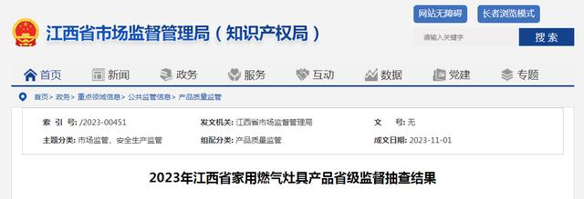 - 江西省市場監督管理局抽查20批次家用燃氣灶具產品 不合格2批次