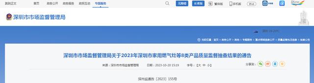 - 2023年深圳市家用燃氣灶等8類產品質量監督抽查結果公布