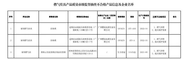 - 3批次家用燃?xì)庠罹叱闄z不合格,生產(chǎn)企業(yè)涉及廣州櫻花電器等