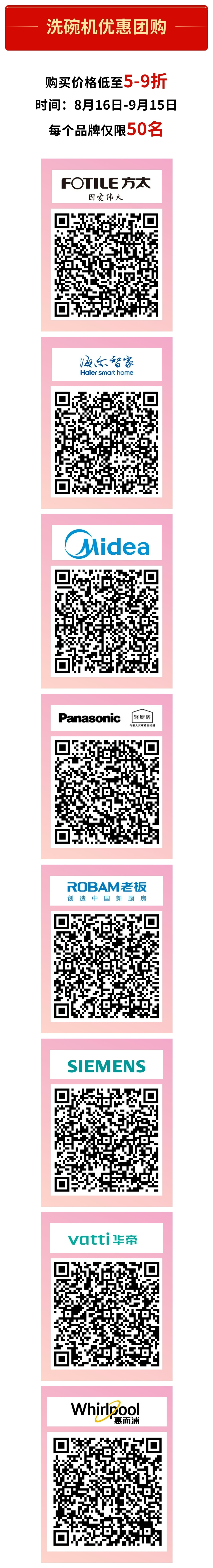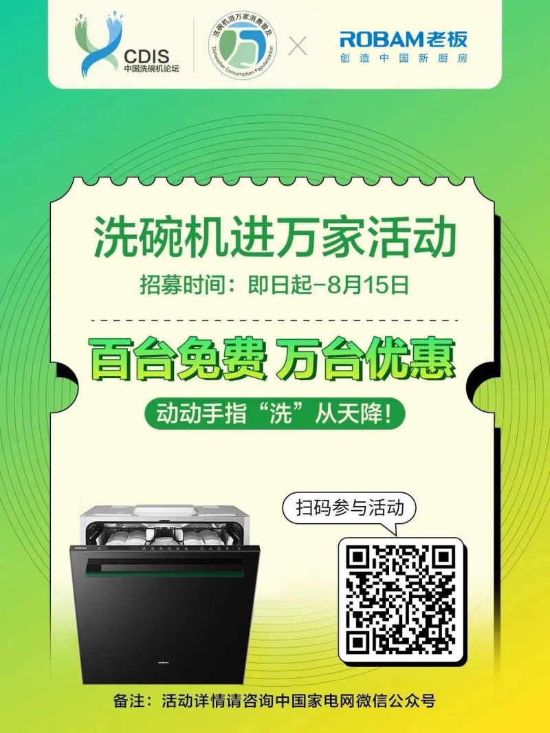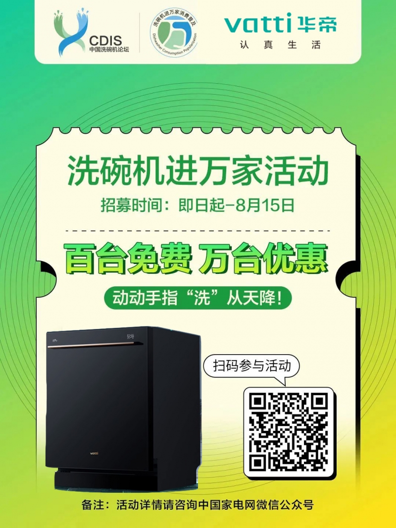 - 8月16日,#2023洗碗機進(jìn)萬家#優(yōu)惠團(tuán)購活動超值上線,購買價格低至5-9折,選購日期截止至 9月15日。 2023洗碗機進(jìn)萬家活動是由中國家用電器協(xié)會、中國家電網(wǎng)聯(lián)手finish亮碟、方太、海爾智
