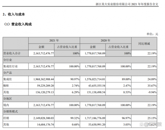 - 在集成灶行業,浙江美大一直以“老大哥”的形象出現。在財報中,浙江美大表示,公司是集成灶行業的開創者和首家上市公司。 據披露,浙江美大2003年研發生產出我國第一臺集吸油煙