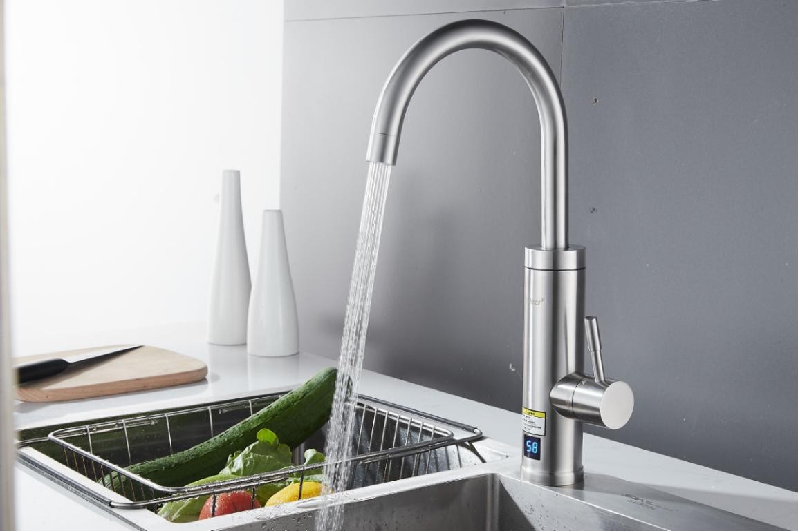 - FUDEER弗德爾電熱水龍頭是一種快速加熱的電熱水器,一般安裝在家里的廚房洗手盆上,由于其出熱水快,能夠即時把原來冰冷的自來水加熱到手感舒適的溫度,令人們在冬天可以舒適的洗手、洗菜、洗簌等。