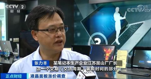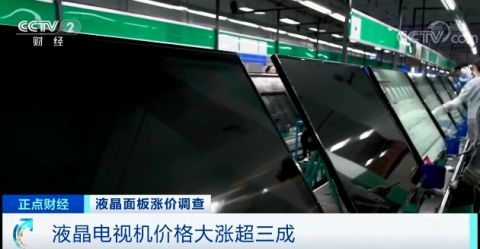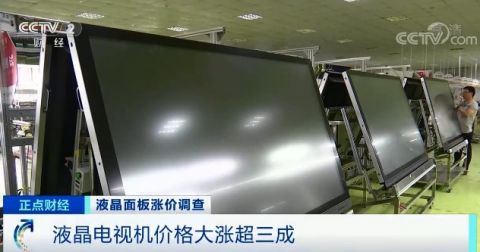 陳敬華告訴記者,目前,電視機價格上漲的主要原因就是原材料液晶面板價格上漲。液晶面板在電視機成本所占的比重已經超過70%,從去年4月起,液晶面板價格開始上漲,企業只能通過產品提價方式緩解經營壓力。江蘇昆山某顯示設備生產企業總經理 陳敬華:這也是這么多年很少見的,連續15個月的漲幅,現在這個漲幅,小尺寸液晶面板漲幅甚至接近200%,大尺寸液晶面板已有將近50-60%的漲幅。