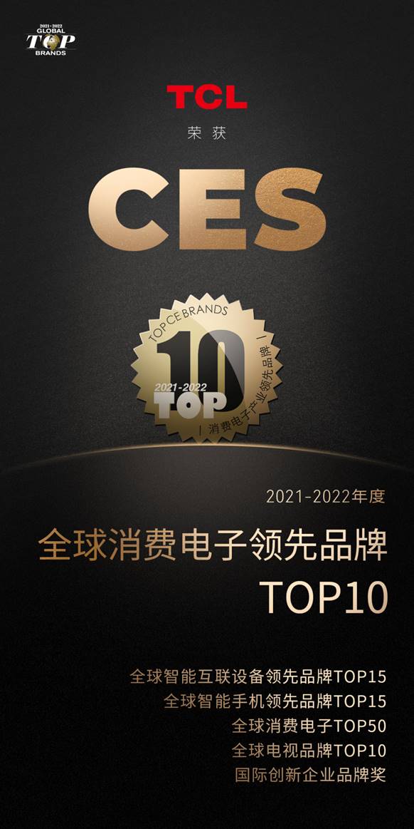 【家電資訊-家電資訊 - 電視機(jī),作者:編輯】作為全球最具影響力的消費(fèi)類電子技術(shù)年展之一,CES集中匯聚全世界的高端產(chǎn)品、技術(shù),全面展示行業(yè)內(nèi)的最新動態(tài),每年都會吸引全球十多萬人出席。而就在剛剛結(jié)束不久的CES 2022上,TCL作為唯一一個(gè)從國內(nèi)攜帶團(tuán)隊(duì)出發(fā)前往海外參展的中國科技企業(yè),以眾多“黑科技”產(chǎn)品驚艷全球,并在同期公布的2021-2022全球領(lǐng)先品牌Global Top Brands榜單上,憑借強(qiáng)大的技術(shù)創(chuàng)新實(shí)力斬獲“2021-2022年度消費(fèi)電子領(lǐng)先品牌TOP10”等六項(xiàng)品牌大獎(jiǎng)。