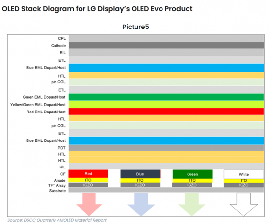 手機(jī)上的OLED面板固然已經(jīng)比較成熟,但分辨率折損的問(wèn)題讓電視機(jī)這類(lèi)對(duì)分辨率比較敏感,甚至需要點(diǎn)對(duì)點(diǎn)顯示的產(chǎn)品來(lái)說(shuō)就不太適合了。因此,OLED電視采用的是通稱(chēng)為WOLED的技術(shù)。