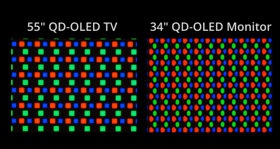 除了電視領(lǐng)域,三星也將QD-OLED的觸角伸向了顯示器等中型尺寸的顯示面板,并聯(lián)合戴爾推出了外星人品牌的QD-OLED顯示器。QD-OLED顯示器像素排列和電視略有不同,但技術(shù)原理大同小異。盡管QD-OLED能夠?qū)崿F(xiàn)相當(dāng)高的畫(huà)質(zhì)表現(xiàn)力,但現(xiàn)階段QD-OLED依然存在一些問(wèn)題。例如三角形的子像素排列雖然沒(méi)有分辨率折損的問(wèn)題,但會(huì)在圖像邊緣形成彩邊,對(duì)于顯示窗口、文字等場(chǎng)景較多的顯示器尤為明顯,此外,QD-OLED結(jié)構(gòu)簡(jiǎn)單,環(huán)境光沒(méi)有偏光片的阻攔,會(huì)反向激發(fā)量子點(diǎn)材料,對(duì)畫(huà)面造成污染。因此QD-OLED不太適用于有光線(xiàn)直射屏幕的場(chǎng)景。
