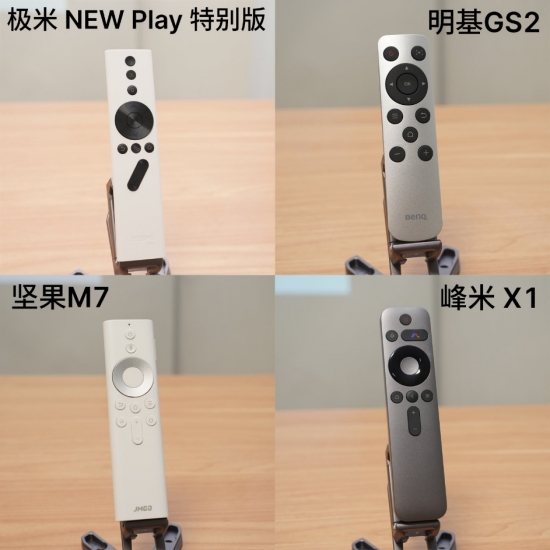 需要注意的是,極米 NEW Play特別版和峰米 X1為按鍵設計了不同的凹凸手感,配合藍牙遙控器可以更舒適的盲操,堅果M7和明基GS2沒有類似的設計。
