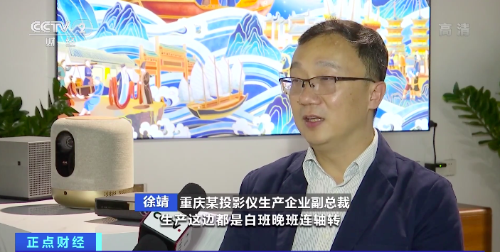 重慶某投影儀生產(chǎn)企業(yè)副總裁 徐靖:整個(gè)“十一”期間,包括整個(gè)十月份生產(chǎn)都是白班晚班連軸轉(zhuǎn),沒(méi)有一天休息,需求非常飽和。