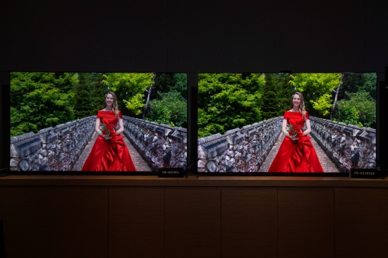 索尼XR-65X95J(左)與XR-65X95EK(右)畫質對比實拍 (注:新品性能提升和拍攝曝光影響,相比之下舊型號畫面較暗)