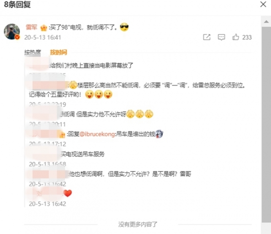 2020年,購買98英寸Redmi MAX 98的王先生安裝電視時動用了吊車,在網絡上引發關注。當時小米之家用了相關圖片刊發了微博,雷軍還評論“買了98"電視,就低調不了”。