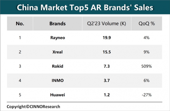 根據CINNO Research統計數據,2023年第二季度,中國AR消費級市場銷量達5.2萬臺,同比增長251%。