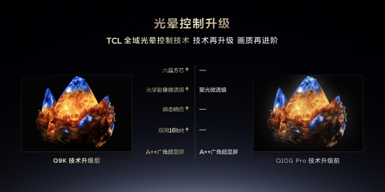 更為重磅的是,Q9K同樣采用了全球領(lǐng)先的TCL全域光暈控制技術(shù),運用六晶方芯、光學(xué)影像微透鏡、與X11H相同的瞬態(tài)響應(yīng)和雙向16bit兩項背光響應(yīng)算法、最適合Mini LED的VA屏——A++廣角超顯屏,多維度實現(xiàn)對光暈的控制,帶來更接近自然的畫質(zhì)體驗。