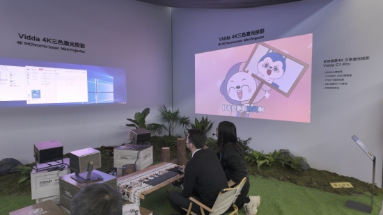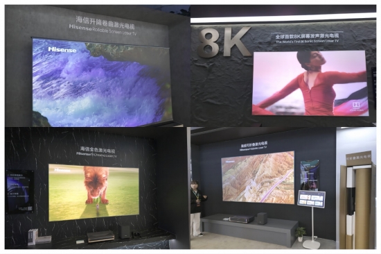 針對戶外場景的投影產品 與此同時,激光電視產品在實現三色激光光源的普及之后,屏幕相關技術逐漸成為未來的發展方向。AWE2024上,海信展出了具備可卷曲、可折疊、屏幕發聲等功能的激光電視產品,進一步解決了超大屏激光電視產品的入戶相關問題。