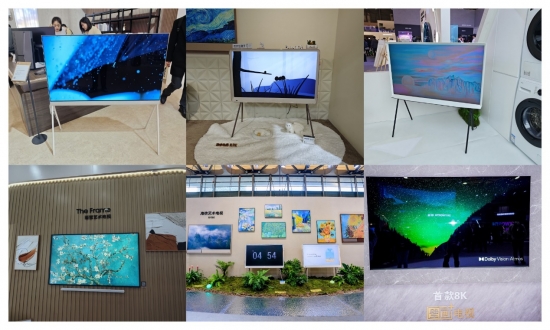 LG、海信、三星、長虹等品牌展出的藝術電視、壁畫電視 而華為智慧屏的智慧畫框、卡薩帝電視的云上美術館、三星電視的藝術畫廊等功能,還可以讓電視在不顯示內容時呈現美術作品,讓電視成為家居藝術裝飾的有機組成部分。
