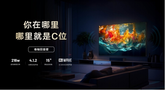 長虹 AI TV:Hi WAVE交響聲景系統,提供360°全維聲場,音感層次豐富。搭配216W峰值功率輸出高品質原音,觀影時足以給人影院級的震撼視聽。