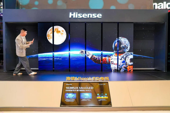 作為行業(yè)首個擁有Micro LED芯片研發(fā)、驅(qū)動控制、精密封裝、圖像增強(qiáng)、畫質(zhì)還原五大核心技術(shù)體系的企業(yè),海信電視展出了全球首款自發(fā)光136吋和163吋Micro LED電視,集成2488萬顆Micro LED芯片,并率先為客戶打造48nit觀影模式,精準(zhǔn)匹配DCI影院標(biāo)準(zhǔn),重構(gòu)高端家庭影院視覺體驗;海信Micro LED以“尺寸自由化”、“形態(tài)場景化”重新定義顯示邊界,支持自由拼接,最大可支持定制到271英寸。