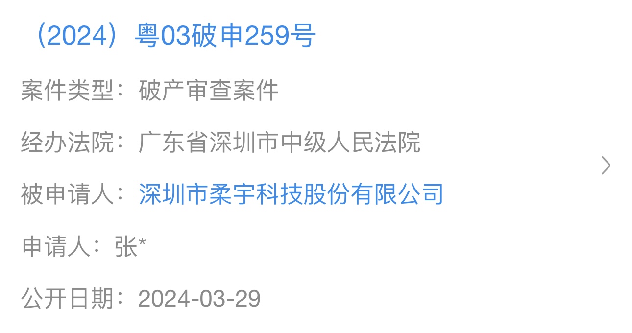- 3月29日,業(yè)內(nèi)傳出深圳市柔宇科技股份有限公司(以下簡(jiǎn)稱(chēng)“柔宇”)破產(chǎn)審查消息。 《中國(guó)電子報(bào)》記者通過(guò)天眼查App查證,柔宇及其子公司深圳柔宇電子技術(shù)有限公司、深圳柔宇
